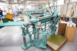 超音波で生地を溶着し、柄入りのテープなどをつくるミシン。